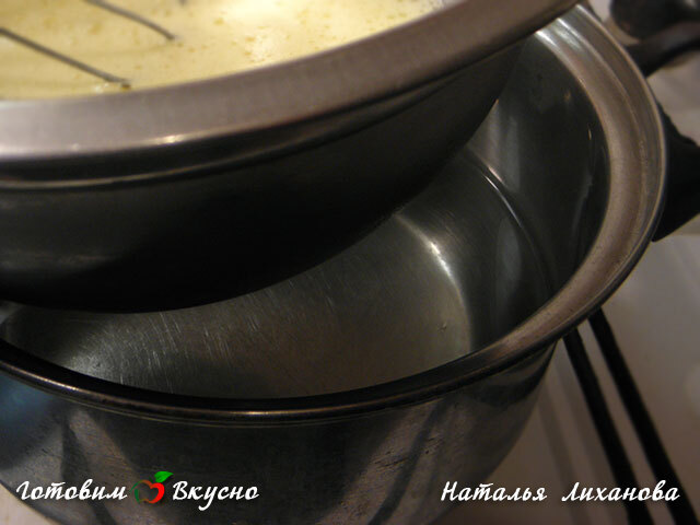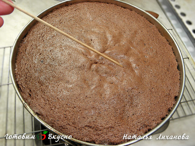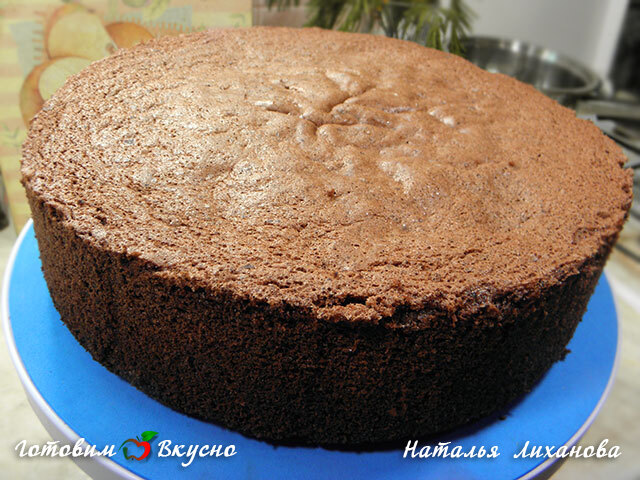 bizcocho al baño maría del molde. Dejamos que el bizcocho se enfríe completamente (6-12 horas) y estamos listos para trabajarlo. Se puede envolver en film transparente, colocar en el congelador y usar según sea necesario. Se conserva perfectamente en el congelador. Es mucho más fácil trabajar con el bizcocho congelado, es más firme al cortarlo y no se desmiga. Al estar en contacto con la crema, se adhiere de inmediato debido a su temperatura fría y adquiere forma.