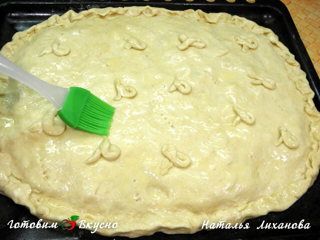 Coprire con l'altro pezzo, sigillare bene i bordi, forare con una forchetta e spennellare con l'uovo.