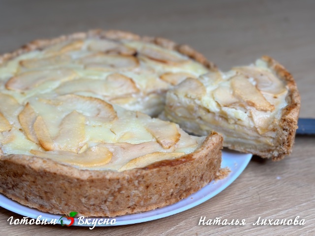 A receita desta torta de maçã pode parecer complicada à primeira vista, mas não é. Basicamente, são fatias de maçã assadas em creme pasteleiro em uma base de massa de biscoito. O recheio suculento e a massa crocante são muito saborosos!