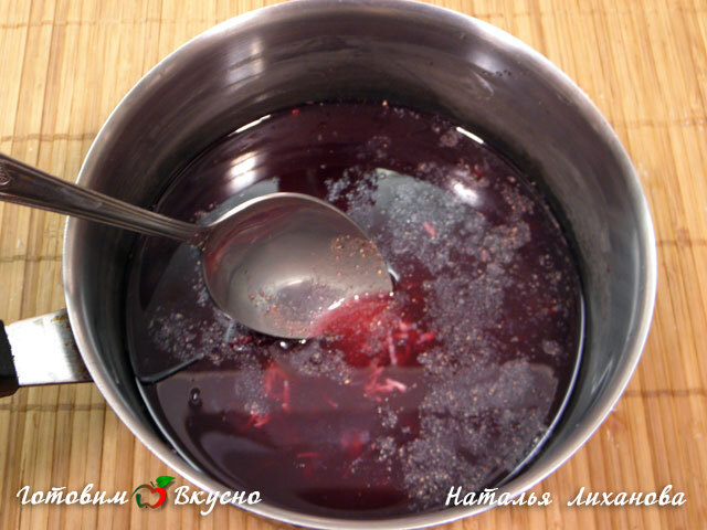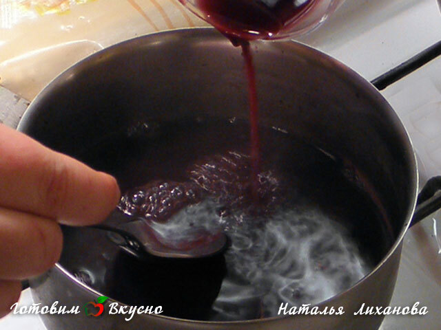 Despeje o suco em uma panela, adicione 50 ml de vinho, acrescente sal, açúcar, alho picado, manjericão, pimenta do reino moída. Leve ao fogo e deixe o molho ferver.