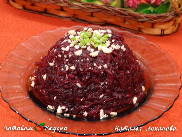 caviar de beterraba por mais alguns minutos sob a tampa e está pronto para servir. Sirva o caviar, polvilhando com nozes e ervas.