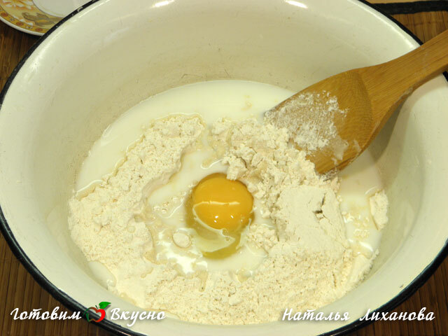Peneire a farinha com o sal em uma tigela grande, faça um buraco no centro, despeje o leite e bata um ovo. Misture bem.