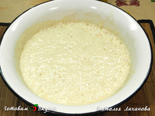 Unte a frigideira e as formas para crumpets com óleo. Coloque a frigideira em fogo médio, coloque as formas. Despeje 2 colheres de sopa de massa em cada anel.
