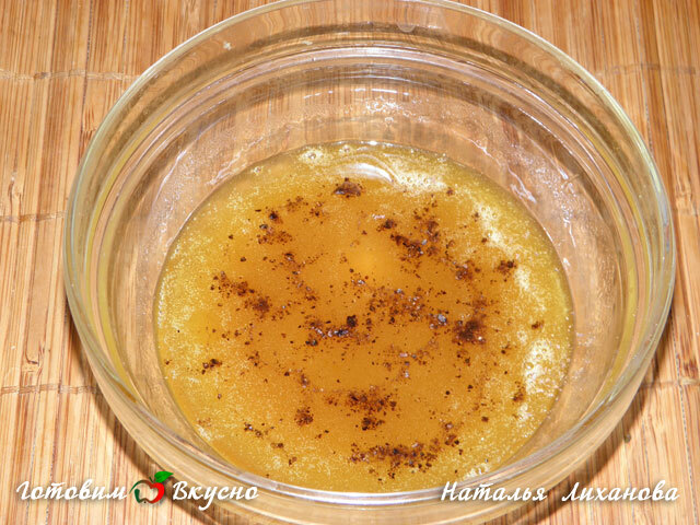 Para preparar o molho de mel com mostarda, misture cuidadosamente o mel com a mostarda.