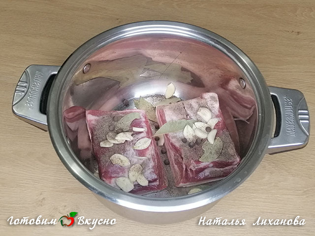 Receita de salmoura de sal por método quente, este método pode ser usado para preparar qualquer tipo de sal. Eu usei um pedaço de barriga, recomendo usar especificamente sal com camada de carne. O sal fica aromático e saboroso, bonito quando cortado. Esse sal é ótimo para armazenar no congelador em sacos de polietileno por um longo período, sem perder suas qualidades de sabor.