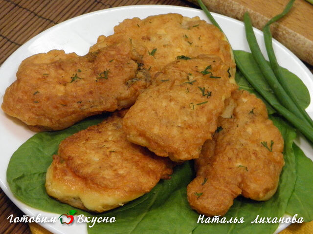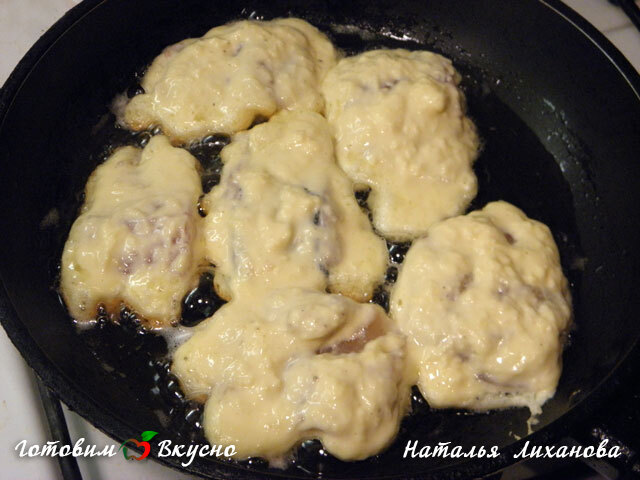 Mergulhe os pedaços de peixe na massa preparada e frite em óleo bem quente de ambos os lados.