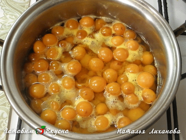 Para preparar o molho tkemali, coloque as ameixas em uma panela, cubra com água e leve ao fogo. Quando começar a ferver, haverá muita espuma, então é necessário ficar de olho e mexer. Cozinhe as ameixas por cerca de 15 minutos, até que estejam bem cozidas.