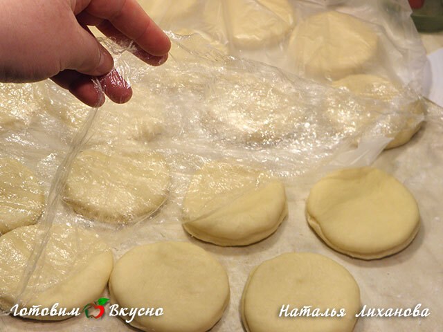 Вырезав все пончики мы накрываем их пленкой и оставляем на расстойку (30 мин.)