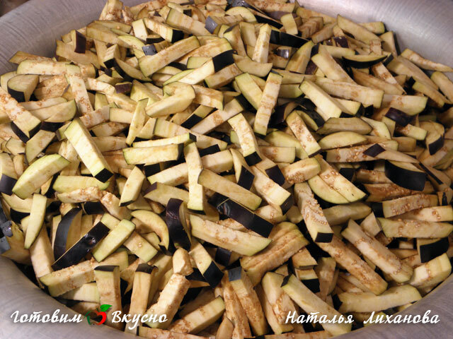 You can check the readiness of the eggplants with a match - if it easily pierces through, they are ready.