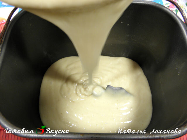 Pour into a greased pan and bake in a preheated oven at 165 degrees Fahrenheit for about 40-45 minutes. Check for doneness with a toothpick, if it comes out dry - the bread is ready.