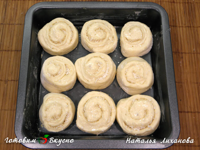 Place the buns in an oiled pan, cover with a towel, and let them rise in a warm place for 15-20 minutes.