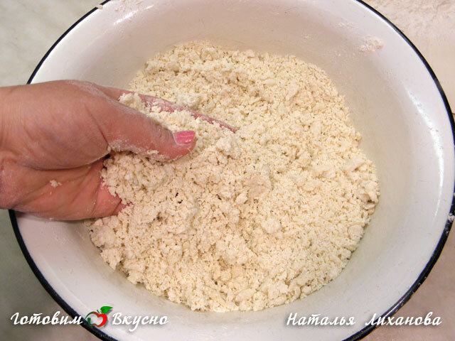 Then sift the flour into a bowl, add the yeast and a pinch of salt. Mix in the mashed potatoes and rub the mixture with your hands until it resembles crumbs.