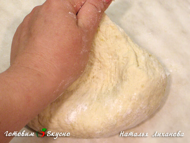 Make a well in the middle and pour in warm water, mix well. Transfer the dough to a lightly floured surface and knead for 5 minutes.