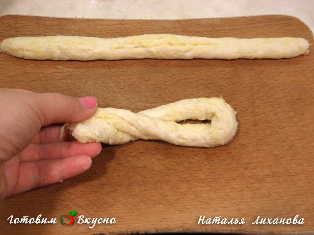 Roll each ball into a long sausage shape, connect the ends and twist.