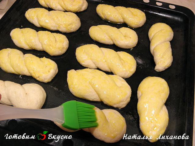 Place the rolls on a buttered baking sheet and let them rise in a warm place for 30 minutes. Then brush the rolls with egg yolk and bake in a preheated oven at 220 degrees Fahrenheit for 10-15 minutes.