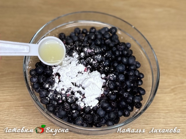 Today I am making a juicy and very delicious pie. The main ingredient in this recipe is blueberries, and there are quite a lot of them, almost one pound. This pie is quickly made from simple ingredients. A warm slice of this pie can be served with a scoop of ice cream alongside a cup of tea or coffee. Juicy blueberries with a hint of lemon, soft light dough, and the refreshing creamy taste of ice cream - it's very delicious!