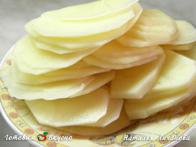 To prepare Gratin Dauphinoise, peel and thinly slice the potatoes using a knife or a vegetable slicer, making slices 3 mm thick.