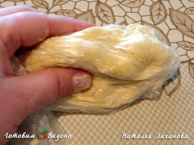 The resulting dough is very convenient to mix in a regular plastic bag. Knead the dough well until it becomes homogeneous. Then put the dough in the refrigerator for 30 minutes.
