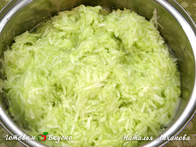 To prepare zucchini caviar, wash zucchinis, peel, and remove the seeds. Grate them coarsely and let sit for 30 minutes. Do not drain the juice.