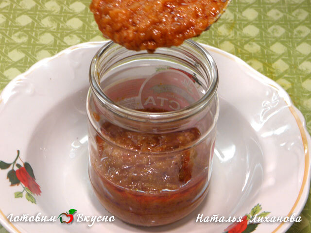 Pour the ready zucchini caviar into sterilized jars and seal with pasteurized lids. Flip them over and wrap until completely cooled.