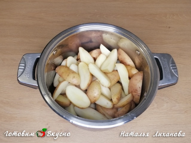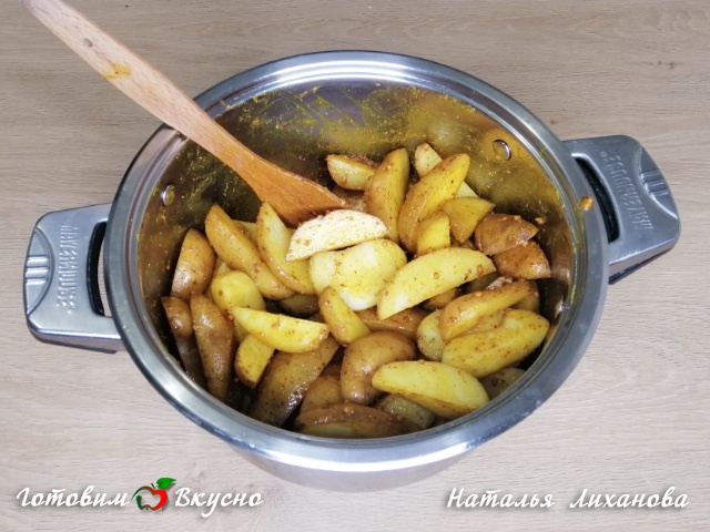 I want to share a simple recipe that many people know. The peculiarity of it is that we don't peel the potatoes and slightly pre-cook them before baking, and the spices are very important here (make sure to use paprika, turmeric, garlic, and mustard). The potatoes turn out very tasty, crispy on the outside and soft on the inside.