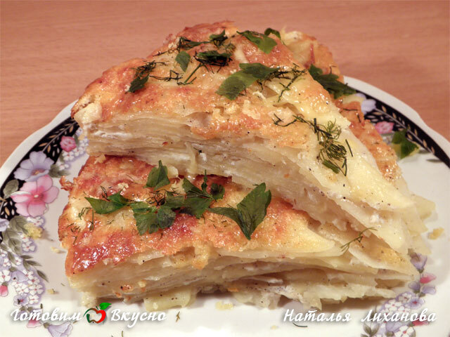 Delicious and quickly prepared dish made of potatoes and cheese. If guests are on the way and you need to quickly prepare a beautiful and tasty dish - cook potatoes following this recipe - this is exactly what you need. It can be served as a standalone dish or as a side to meat, for example.