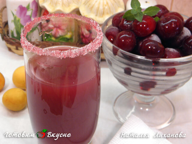 whey cherry juice kissel, strain the whey, pour it into an enameled saucepan, add the juice, sugar, and bring to a boil. Then, stirring, pour in the diluted starch in cold water in a thin stream. Bring to a boil and immediately remove from heat. Let the kissel sit hot for 10-15 minutes, then cool. Serve the