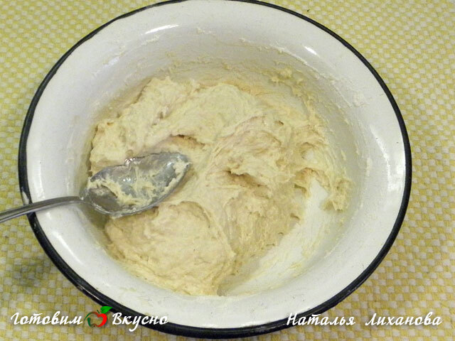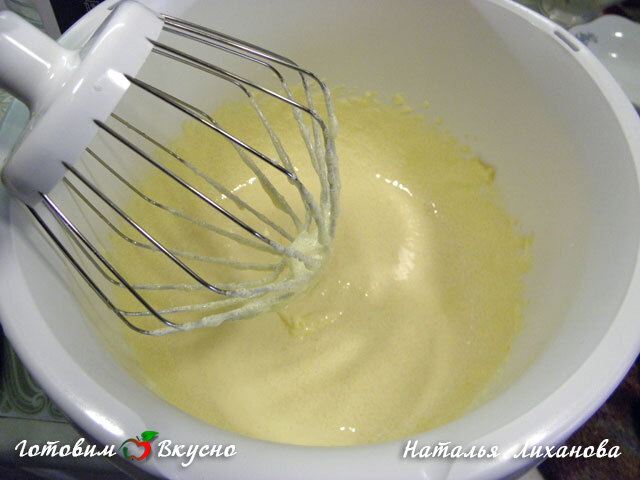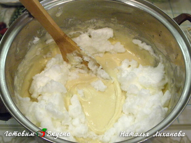 Add softened butter (or margarine) to the well-mixed yolks and sponge, mix, add beaten egg whites, mix until smooth.