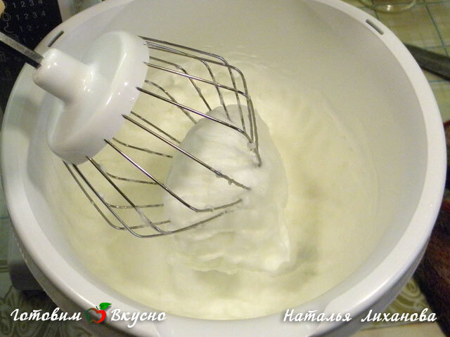 Thoroughly clean the mixer bowl, dry it, add the egg whites and beat until stiff peaks form.