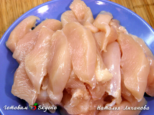 Cut the chicken fillet into strips.
