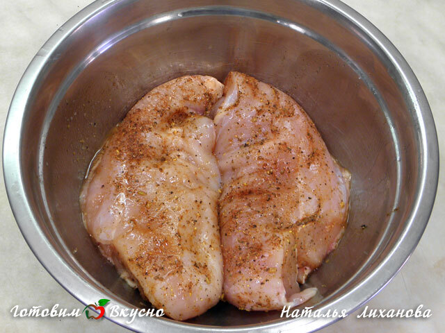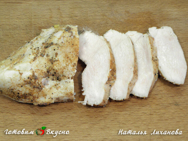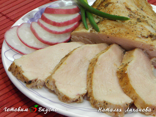 A recipe for juicy chicken breasts that simply melt in your mouth. The meat ends up resembling ham, very delicious! This meat will make a perfect appetizer and can also be used for various sandwiches. A very nutritious and tasty dish, especially for children.