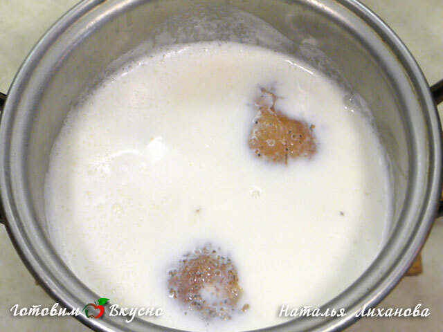 Bring the milk to a boil, immerse the breasts in it, let it simmer for 1 minute and turn off the heat. Then quickly cover the pot with a lid and wrap it in a blanket, similar to how you would do with porridge or potatoes, for example. Leave for 1 hour.