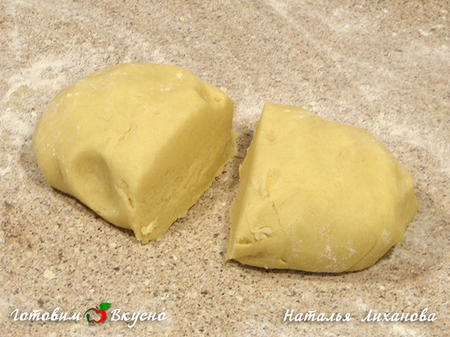 Divide the dough into two parts, wrap in plastic wrap, and refrigerate for about 2 hours.