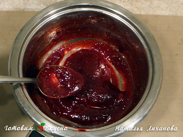 While the dough chills, let's make the jam. You can use ready-made jam or thick preserves. I made jam from frozen strawberry puree. I placed it in a saucepan, melted it on the stove, added sugar, and cooked until thickened (I cooked the jam for about 20 minutes). Allow the jam to cool.