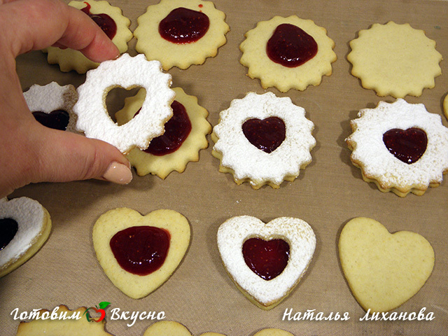 Recipe of these cookies belongs to Austrian cuisine, known for its delicious desserts. These cookies are easy to make, very tasty, soft, and homely. Be sure to make them and impress your guests. Also, such cookies will make a wonderful gift; you can shape the 'windows' in the cookies into different forms (hearts like mine, trees, little people, etc.)