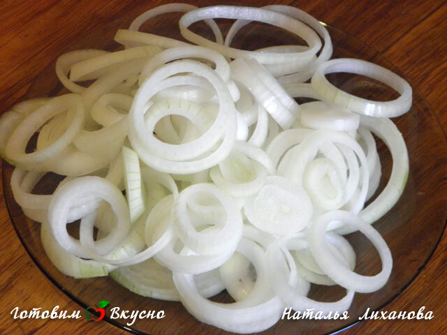 To prepare caramelized onion in balsamic vinegar, peel and slice the onion into rings, not too thinly. Separate the rings.
