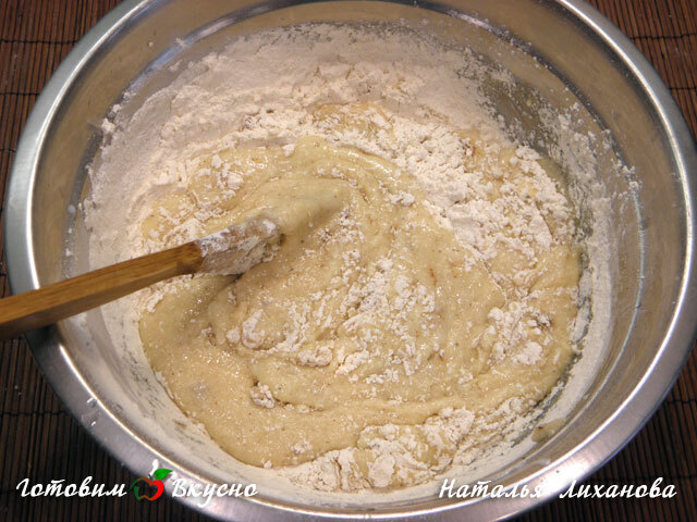 Then mix flour, baking soda, salt, cinnamon, sift all together, and add it to the previous mixture. Mix thoroughly until smooth.