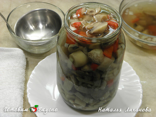 Transfer the cooled marinated mushrooms to jars and store in the refrigerator.