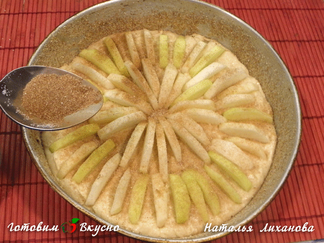 Kuchen is a general name for German sweet cakes, with apple baking (Apfelkuchen) holding a special place among them, being very popular. Even when something goes wrong, Germans say der Kuchen ist angebrannt - meaning the cake is burnt. Apple pie is a widespread dish, with numerous recipes available, and in one form or another is present in almost all cuisines around the world. In Eastern Europe, it's known as 'apple sharlotka', in France 'Tarte Tatin', and also Viennese apple strudel, and so on. Each nationality has added its own touch to the pies (caramel, butter, nuts...), Germans mostly prefer to pair apple pie with almond shavings or a cream made of milk and butter. The cake usually gets topped with a milk sauce that's similar in consistency and taste to a custard cream but more liquid. Personally, I love apple pie very much, and if it's drizzled with warm creamy sauce... it's the ultimate delight!