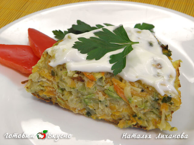 Vegetable kugel is a dish from Jewish cuisine. This recipe uses simple and well-known vegetables that can be found in any housewife's fridge. Essentially, it is a vegetable casserole that is quick to make and perfect for breakfast. The kugel turns out very tasty, especially when served with sour cream.