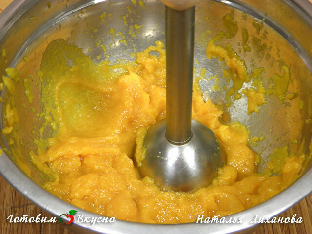 The recipe for pumpkin cookies is very simple. Wash the pumpkin, remove the seeds, cut into large pieces, cover with water and boil together with the peel. Cool the cooked pumpkin. Remove the pulp from the peel with a spoon and puree it with a blender.