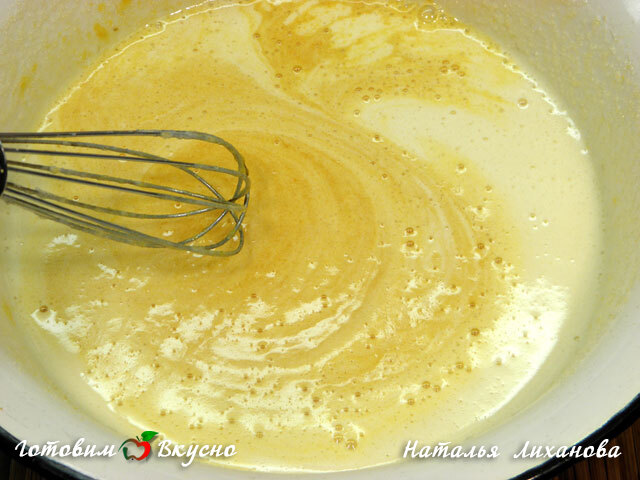 Beat eggs with sugar, add the pumpkin puree and mix. Then add the oil (melted), baking powder, and flour. Mix everything together.