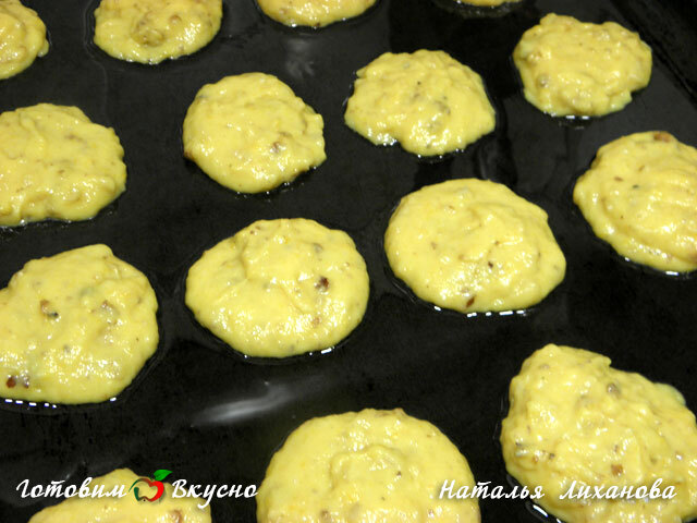 Carefully place the dough on an oiled sheet (or use parchment paper) using a spoon. Place the cookies in a preheated oven and bake at a temperature of 350 degrees for 10 minutes.