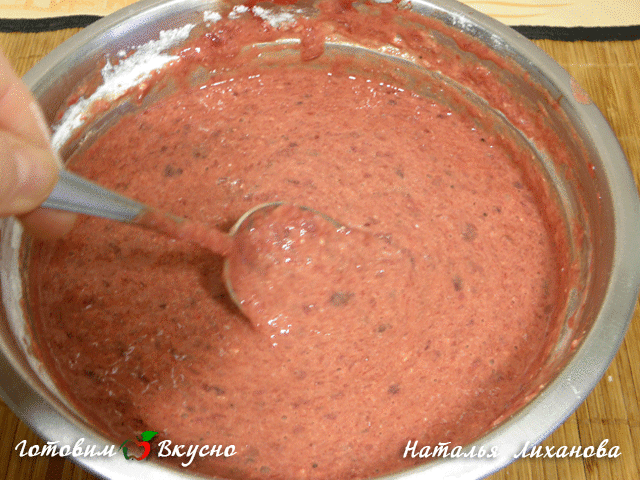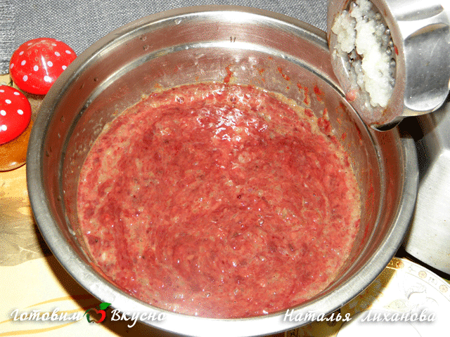 Thoroughly mix everything and add kefir with baking soda, eggs, flour, salt, and pepper.
