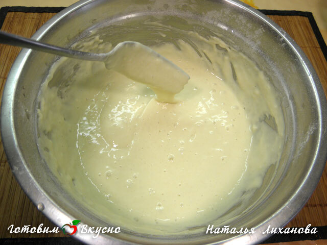 Then add the remaining ingredients (flour, salt, eggs) and mix to obtain a liquid dough.