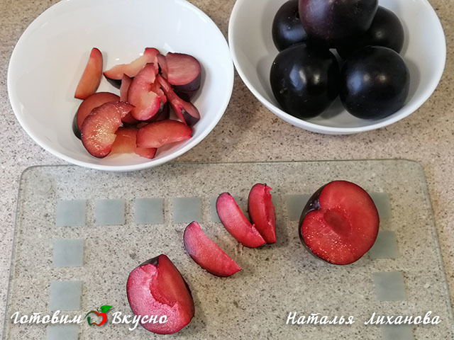 Wash the plums, slice them into not too thin wedges.