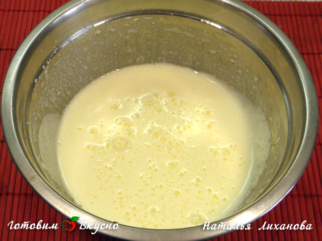 Add kefir, baking powder, vanilla sugar, and mix well.