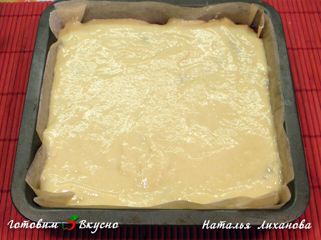 Spread the second half of the batter. Bake the cake in an oven preheated to 350 degrees for 40-60 minutes (depending on the oven).