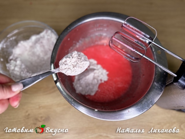 Mix the dry ingredients and add to the main mass, beat again until smooth.