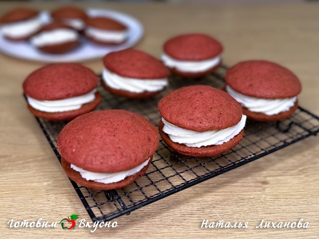 Then cover with the other half, and the Red Velvet pastry is ready! It has a simply delightful color and doesn't need any additional decorations.